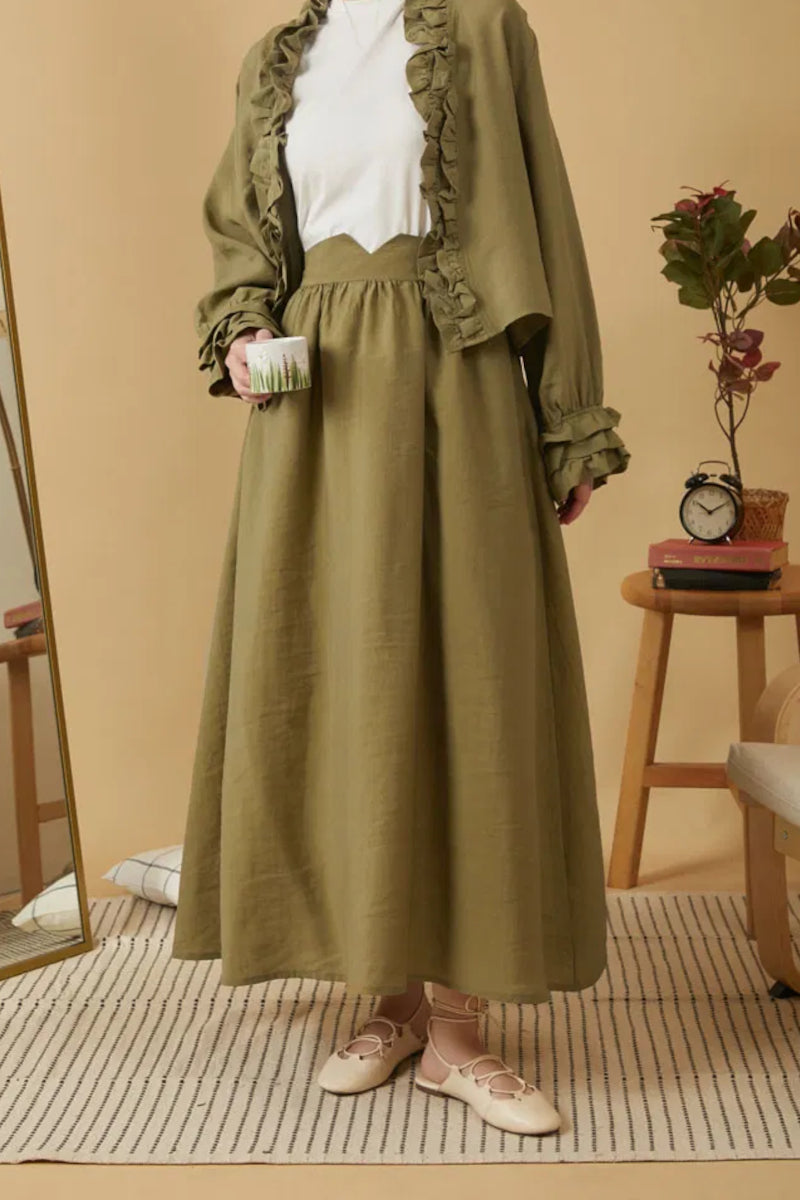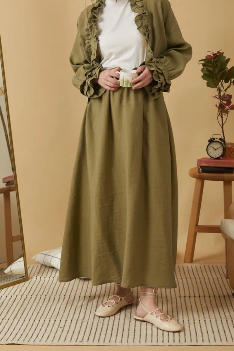 Confeccionada con la suavidad única y la textura fluida del tejido modal, esta falda midi ofrece un estilo elegante y comodidad durante todo el día. El delicado fruncido en la cintura le aporta un toque femenino y dinámico, mientras que su corte fluido garantiza una cómoda libertad de movimiento.