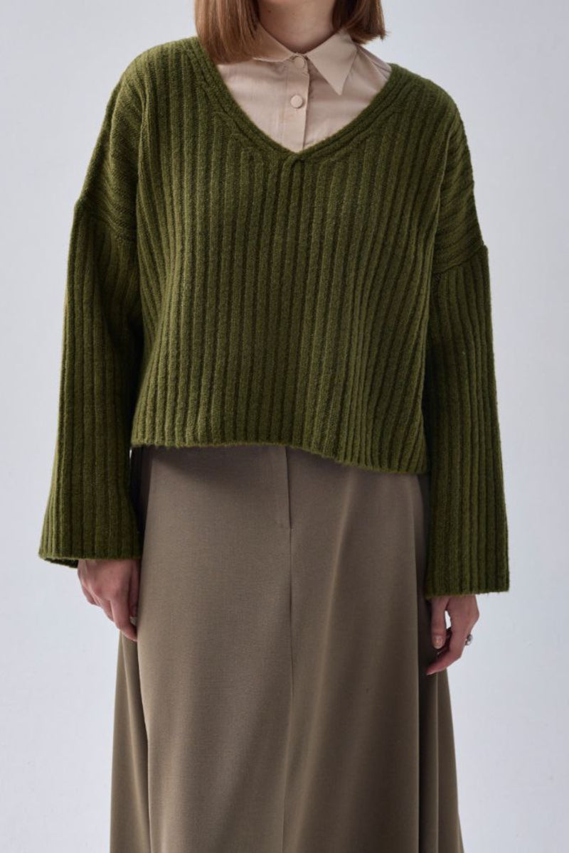 Con su corte moderno y holgado, este jersey corto con cuello en V añade un toque de estilo a cualquier look de diario. Su tejido grueso y texturizado proporciona una cálida calidez en los días fríos, mientras que el cuello en V combina comodidad y elegancia. Su largo corto lo hace ideal para combinar con pantalones y faldas de cintura alta.